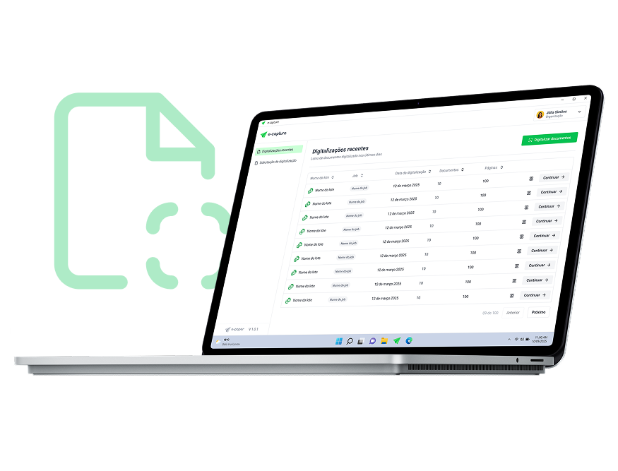 Todo documento digitalizado pode ser automaticamente enviado e estruturado no sistema de gestão documental.